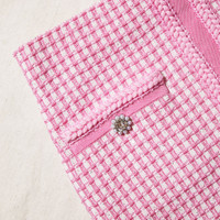 Knitted with lurex for a stretchy fit and shimmery finish, this skirt is a flirty yet polished day-to-night piece. The front and pockets are lined with braided trims and diamanté buttons for a preppy feel, while a form-fitting silhouette and leg-lengthening hem guarantee a steady flow of compliments. Style it with our matching cropped top and boots for a modern update to the skirt suit. Check the Size Guide to find your perfect fit. COMPOSITION Main: 87% Viscose 13% Polyester Trim: 56% Cotton 44% Polyester