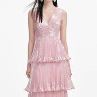 Details & Fit Metallic pink chiffon gives this maxi dress party-ready appeal, with a fitted bodice that falls to twirl-worthy pleats. Pair with our statement jewellery and heels to make a dramatic entrance. Metallic pink chiffon gives this maxi dress party-ready appeal, with a fitted bodice that falls to twirl-worthy pleats. Pair with our statement jewellery and heels to make a dramatic entrance. - Fitted style, take one size up if between sizes - This style has minimal stretch - Zip closure at back - Removable diamante belt - Pleated three tiered skirt - Model is 5ft10/178cm and wears a size UK 6 - Fitted style, take one size up if between sizes - This style has minimal stretch - Zip closure at back - Removable diamante belt - Pleated three tiered skirt - Model is 5ft10/178cm and wears a size UK 6 COMPOSITION Main Fabric: 68% Silk 32% Metallised Fibre Lining: 100% Polyester Exclusive Of Trimmings Main Fabric: 68% Silk 32% Metallised Fibre Lining: 100% Polyester Exclusive Of Trimmings