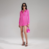 A traffic-stopper with a classically tailored silhouette, this top is covered in rhinestones in a stunning shade of fuchsia for a glamorous, high-shine finish. A structured collar and shoulder pads highlight its relaxed, oversized fit, making it the perfect piece to tuck into body-hugging mini skirts and high-waisted leggings for a night on the dance floor. Check the Size Guide to find your perfect fit. COMPOSITION Main Fabric : 97% Polyester 3% Elastane