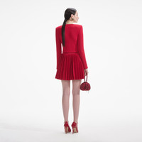 Details & Fit We love a co-ord, and this mini skirt — with its bold red knit and timeless pleated design — is one half of an epic date night look. Style with a pair of our statement earrings for full impact. COMPOSITION Main: 44% Polyester 34% Cotton 12% Polyamide 9% Wool 1% Elastane