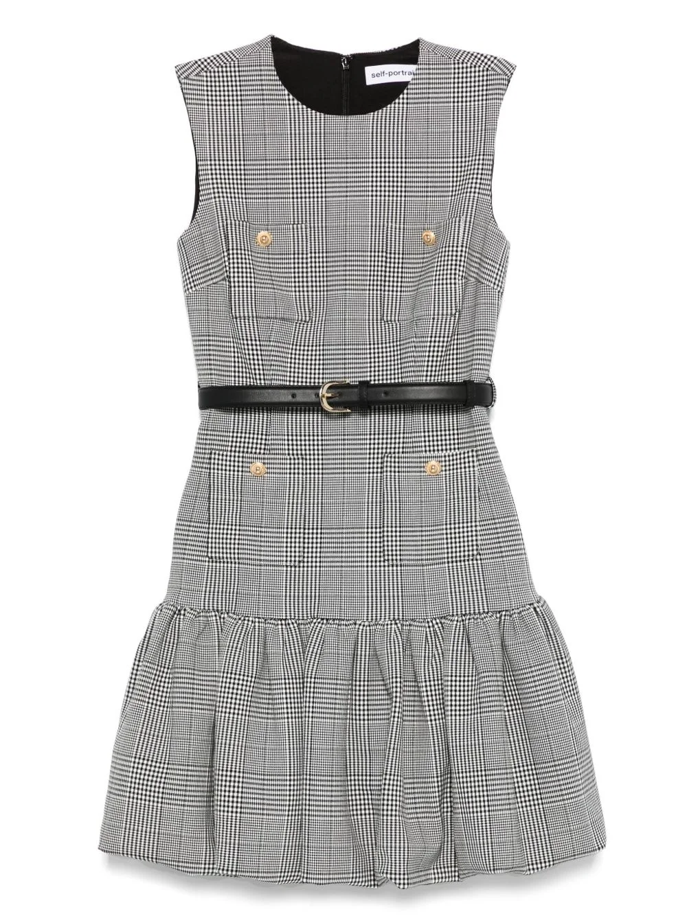 checked dress Highlights - Black/white - Rear zip fastening - Crew neck - Detachable and adjustable waist belt - Sleeveless - Four front patch pockets - Flared hem Imported Composition Outer: Polyester 66%, Viscose 31%, Elastane 3% Lining: Polyester 100% SIZE & FIT Model measurements Height 5 ft 10 in(1.78 m) Bust/Chest 31.49 in(80 cm) Hips 37 in(94 cm) Waist 23.62 in(60 cm) FittingInformation Designed for a slim fit that sits just away from the body offering a close yet comfortable fit Made from a midweight stretch fabric, this piece offers elasticity and flexibility when worn Washing instructions Dry Clean Only