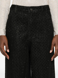 rhinestone-embellished jeans Highlights - Black - Cotton - Denim - Rhinestone embellishment - Belt loops - Two side slash pockets - Two rear patch pockets - Straight leg - Front button and zip fastening Made in United Kingdom Composition Lining: Polyester 94%, Cotton 6% Outer: Cotton 100% SIZE & FIT Model measurements Height 5 ft 10 in(1.77 m) Bust/Chest 29.92 in(76 cm) Hips 34.25 in(87 cm) Waist 23.62 in(60 cm) Measurement FRONT RISE 12.99 in(33 cm) HIPS 36.22 in(92 cm) WAIST 26.77 in(68 cm) FittingInformation Designed with a wide leg cut, these jeans allow for a close fit at the waist and offer a loose and roomy fit over the leg Sturdy and hard-wearing, this denim piece offers no stretch This piece fits true to size – take your usual size Washing instructions Dry Clean Only