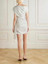 Tie-side Asymmetric Polka-dot Satin-crepe Mini Dress