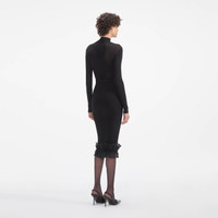 Black Ruffle Knit Midi Skirt