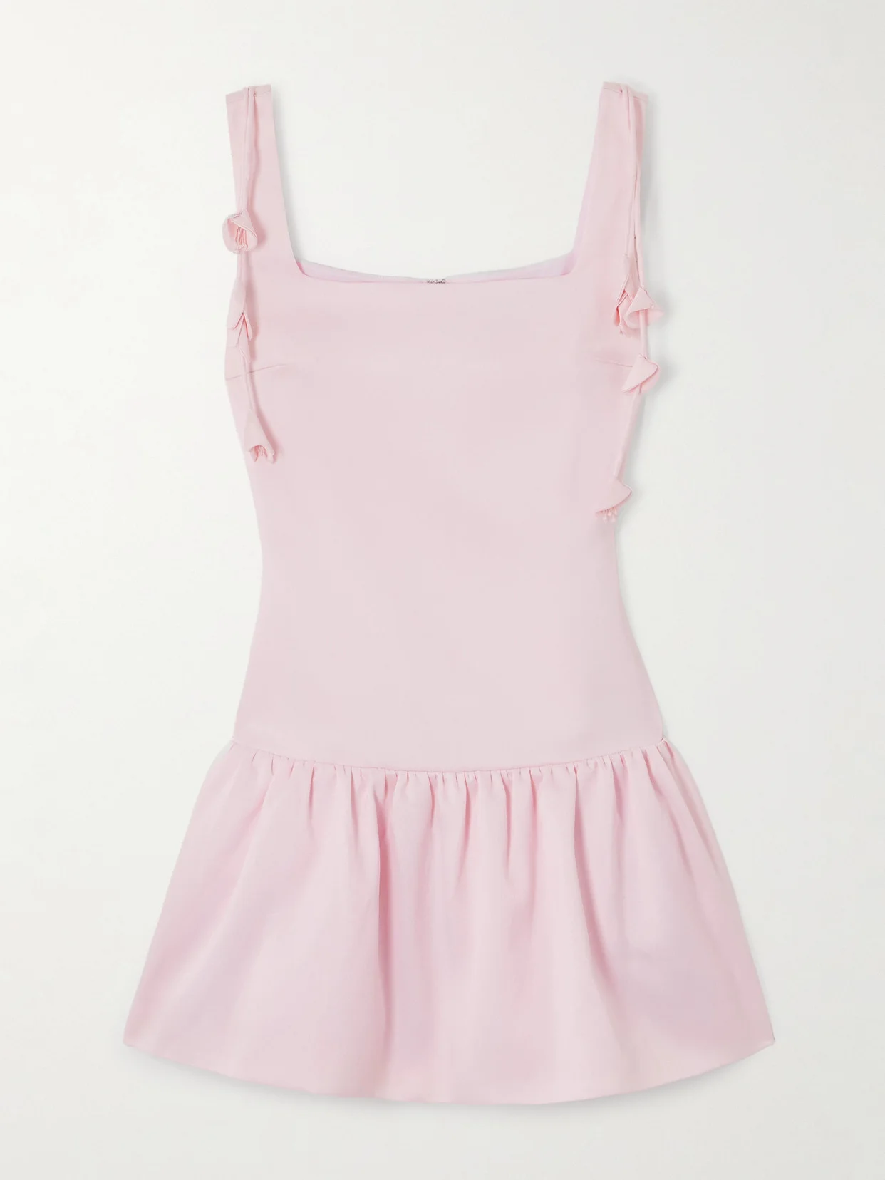 Self-Portrait's dress is so, so pretty. Made from soft-pink taffeta, it has a square neckline and 3D lilies trailing from the shoulder straps. The drop-waist mini skirt looks great with sandals or Mary Jane pumps.