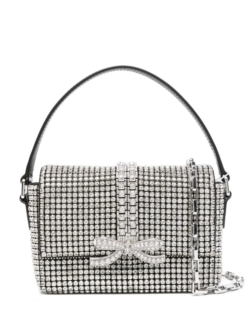 rhinestone-embellished micro bag Highlights - Silver-tone - Gem embellishment - Rectangle body - Single flat top handle - Detachable chain-link shoulder strap - Bow detailing - Main compartment - Internal logo stamp - Internal patch pocket - Leather lining - Silver-tone hardware - Foldover top with magnetic fastening Imported Composition Outer: Calf Leather 100%, Metal 100% SIZE & FIT Model measurements Height 5 ft 10 in(1.77 m) Bust/Chest 34.25 in(87 cm) Hips 37.4 in(95 cm) Waist 29.13 in(74 cm) Measurement DEPTH 1.96 in(5 cm) HANDLE 16.53 in(42 cm) HEIGHT 4.72 in(12 cm) STRAP 27.55 in(70 cm) WIDTH 6.69 in(17 cm)