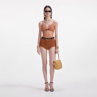 Details & Fit A going-out staple, see and be seen in this tan dot mesh bodysuit. The plunging V-neckline and lace trims add extra sensuality – pair its neutral hue with sparkling minis and baggy denim alike. - Fitted style, take one size up if between sizes - Popper closure at gusset - Lined at bust - Lace trims and panelling - Bow detailing - Model is 5ft10/178cm and wears a size UK 6 COMPOSITION Main Fabric 1: 82% Polyamide 18% Elastane Main Fabric 2: 100% Polyester Main Fabric 3: 100% Polyester Lace Trim: 100% Polyamide Lining: 87% Polyester 13% Elastane