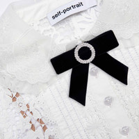 Details & Fit Cut from white lace, a front bib detail and bow brooch give this classic shirt an ultra-feminine spin. Style its relaxed fit with skirts and denim alike for alfresco lunches and garden parties.Cut from white lace, a front bib detail and bow brooch give this classic shirt an ultra-feminine spin. Style its relaxed fit with skirts and denim alike for alfresco lunches and garden parties. - True to size - Relaxed fit - Button closure down front - Unlined style - Bow brooch - Model is 5ft10/178cm and wears a size UK 6 - True to size - Relaxed fit - Button closure down front - Unlined style - Bow brooch - Model is 5ft10/178cm and wears a size UK 6 COMPOSITION Main: 100% Polyester Trim1: 91% Polyester 9% Polyamide Trim2: 100% Cotton Trim3: 100% Polyester Main: 100% Polyester Trim1: 91% Polyester 9% Polyamide Trim2: 100% Cotton Trim3: 100% Polyester