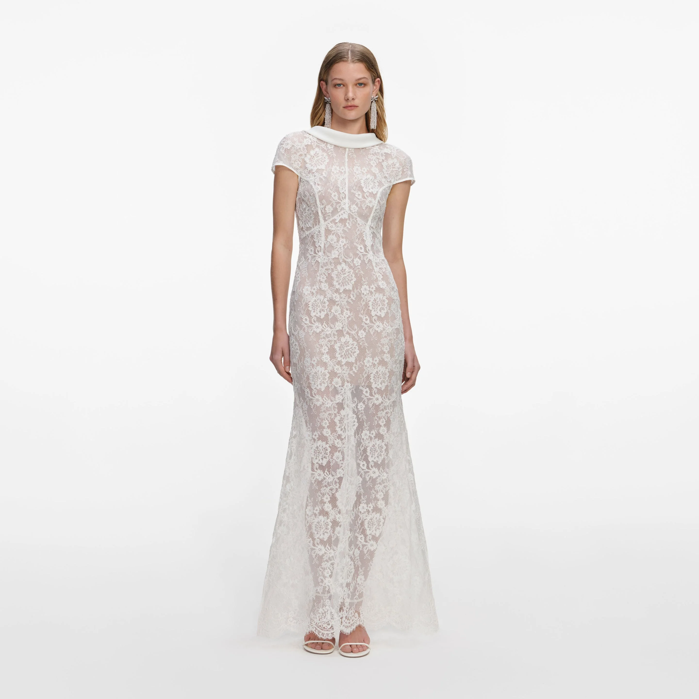 Details & Fit Endlessly elegant in shining satin, a low-cut neckline at the back adds beautiful intrigue to this dreamy lace maxi dress. Style with heels and our statement accessories to sweep down the aisle. - Fitted style - This style has minimal stretch - Concealed zip closure at back - Fully lined to above the knee - Scalloped hem - Model is 5ft10/178cm and wears a size UK 6 Composition Main Fabric: 100% Polyester Contrast: 100% Polyester Lining: 100% Polyester