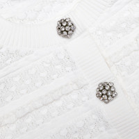 Details & Fit Adorned with textural ruffles, this white knit cardigan radiates cosy charm. Removable shoulder pads and diamante buttons bring extra glamour – add our matching skirt for an irresistibly chic set. - True to size - Fabric has stretch - Button closure down front - Removable shoulder pads - Matching skirt available - Model is 5ft10/178cm and wears a size S Composition Main Fabric: 82% Viscose 18% Polyester