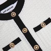 Details & Fit Designed to flatter with its peplum waist and flared hem, contrast trims give this white pointelle knit dress an extra preppy edge. Match its gold buttons with a pair of our statement earrings.Designed to flatter with its peplum waist and flared hem, contrast trims give this white pointelle knit dress an extra preppy edge. Match its gold buttons with a pair of our statement earrings. - True to size - Fabric has stretch - Button closure down front - Fully lined - Contrast trims - Model is 5ft10/178cm and wears a size S - True to size - Fabric has stretch - Button closure down front - Fully lined - Contrast trims - Model is 5ft10/178cm and wears a size S COMPOSITION Upper Body: 41% Viscose 35% Polyamide 23% Polyester 1% Elastane Lower Body: 40% Viscose 32% Polyamide 28% Polyester Lining: 77% Viscose 23% Polyamide Upper Body: 41% Viscose 35% Polyamide 23% Polyester 1% Elastane Lower Body: 40% Viscose 32% Polyamide 28% Polyester Lining: 77% Viscose 23% Polyamide