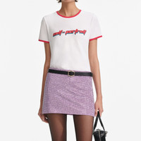 Details & Fit Channel noughties chic in this jersey t-shirt, with its contrast trims and printed red logo. Use it to build your off-duty look or style with glittering minis for a cool girl take on party style.Channel noughties chic in this jersey t-shirt, with its contrast trims and printed red logo. Use it to build your off-duty look or style with glittering minis for a cool girl take on party style. - True to size - Fabric has stretch - Logo print - Contrast trims - Model is 5ft10/178cm and wears a size UK 6 - Check the Size Guide to find your perfect fit - True to size - Fabric has stretch - Logo print - Contrast trims - Model is 5ft10/178cm and wears a size UK 6 - Check the Size Guide to find your perfect fit COMPOSITION Main Fabric: 60% Cotton 40% Polyester Contrast: 91% Cotton 9% Elastane Main Fabric: 60% Cotton 40% Polyester Contrast: 91% Cotton 9% Elastane