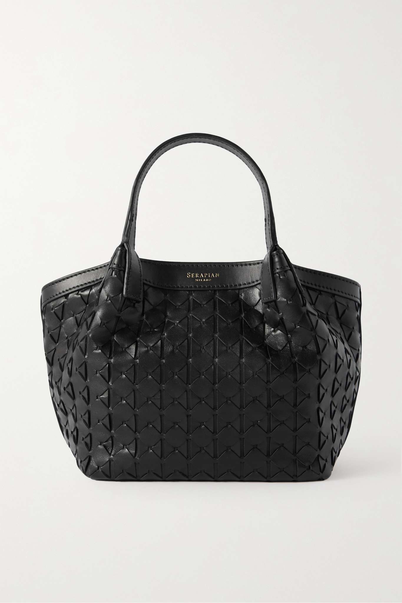 EDITORS'NOTES This mini version of Serapian's 'Secret' tote is sized to hold just the essentials, like your phone, cardholder and makeup pouch. Based on the shape of the original design, it's been crafted in Italy from strips of leather woven using the brand's signature 'Mosaico' technique. Attach the adjustable strap to carry it over your shoulder. SIZE & FIT This item’s measurements are: - Handle Drop: 10cm / 3.9in - Height: 18cm / 7.1in - Width: 30cm / 11.8in - Depth: 13cm / 5.1in DETAILS & CARE - Black and gold leather (Lamb and Calf) - Snap-fastening tab at open top - Comes with dust bag - Weighs approximately 1.8lbs/ 0.8kg