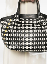 mini Secret mosaico tote bag Highlights - Black - Top handle - Internal slip pocket Made in Italy Composition Outer: Calf Leather 100% Lining: Microfibre 100% SIZE & FIT Model measurements Height 5 ft 10 in(1.79 m) Bust/Chest 30.31 in(77 cm) Hips 34.64 in(88 cm) Waist 23.62 in(60 cm) Measurement DEPTH 4.72 in(12 cm) HEIGHT 7.08 in(18 cm) WIDTH 7.48 in(19 cm)