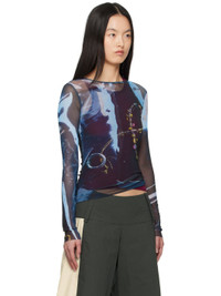 Semi-sheer stretch recycled polyester jersey T-shirt. Graphics printed throughout. · Boatneck · Raw edge at hem and cuffs Supplier color: Print 92% recycled polyester, 8% elastane. Made in Greece 251238F110001