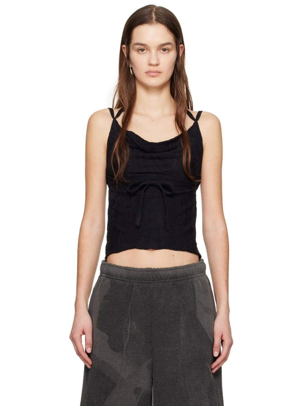 Knit nylon- and viscose-blend camisole. Jacquard graphic pattern throughout. · Cowl neck · Halter strap · Off-the-shoulder straps · Self-tie strap at back Supplier color: Charcoal 57% polyamide, 43% viscose. Made in Greece 241238F111004
