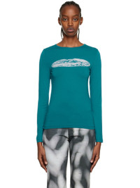 Stretch viscose jersey T-shirt. · Crewneck · Graphic printed at chest Supplier color: Petrol blue 92% viscose, 8% elastane. Made in Greece 222238F110017