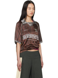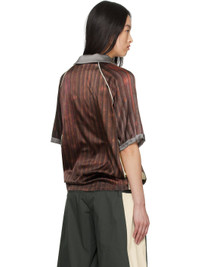 Stretch silk satin polo. Stripe pattern printed throughout. · Spread collar · Open placket · Logos embroidered at chest · Logo and text bonded at front · Piping at raglan sleeves Supplier color: Print 96% silk, 4% elastane. Made in Greece 251238F108004