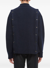 ribbed sweater Highlights - Navy blue - Button fastening - Mock neck - Long sleeves Made in Italy Composition Wool 70%, Cashmere 30%