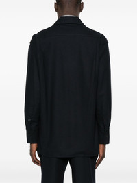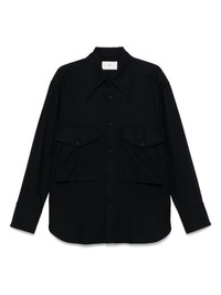 long-sleeve shirt Highlights - Midnight blue - Front button placket - Buttoned cuffs - Two front flap pockets - Pointed flat collar Made in Italy Composition Virgin Wool 68%, Polyamide 25%, Cashmere 5%, Elastane 2% SIZE & FIT Model measurements Height 5 ft 9 in(1.75 m) Bust/Chest 31.88 in(81 cm) Hips 34.64 in(88 cm) Waist 24.01 in(61 cm) FittingInformation This unisex piece is designed for a loose fit whether you usually select women's or men's sizes Made from a midweight stretch fabric, this piece offers elasticity and flexibility when worn