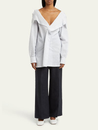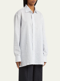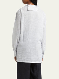 SETCHU textured stripe blouse May be styled in multiple ways Spread collar; button front Long sleeves; button cuffs Straight fit Side slits Hook closure Cotton/silk Unlined Made in Italy Online Inquiries: BGS21_B9KNU| Store Inquiries: #4894455