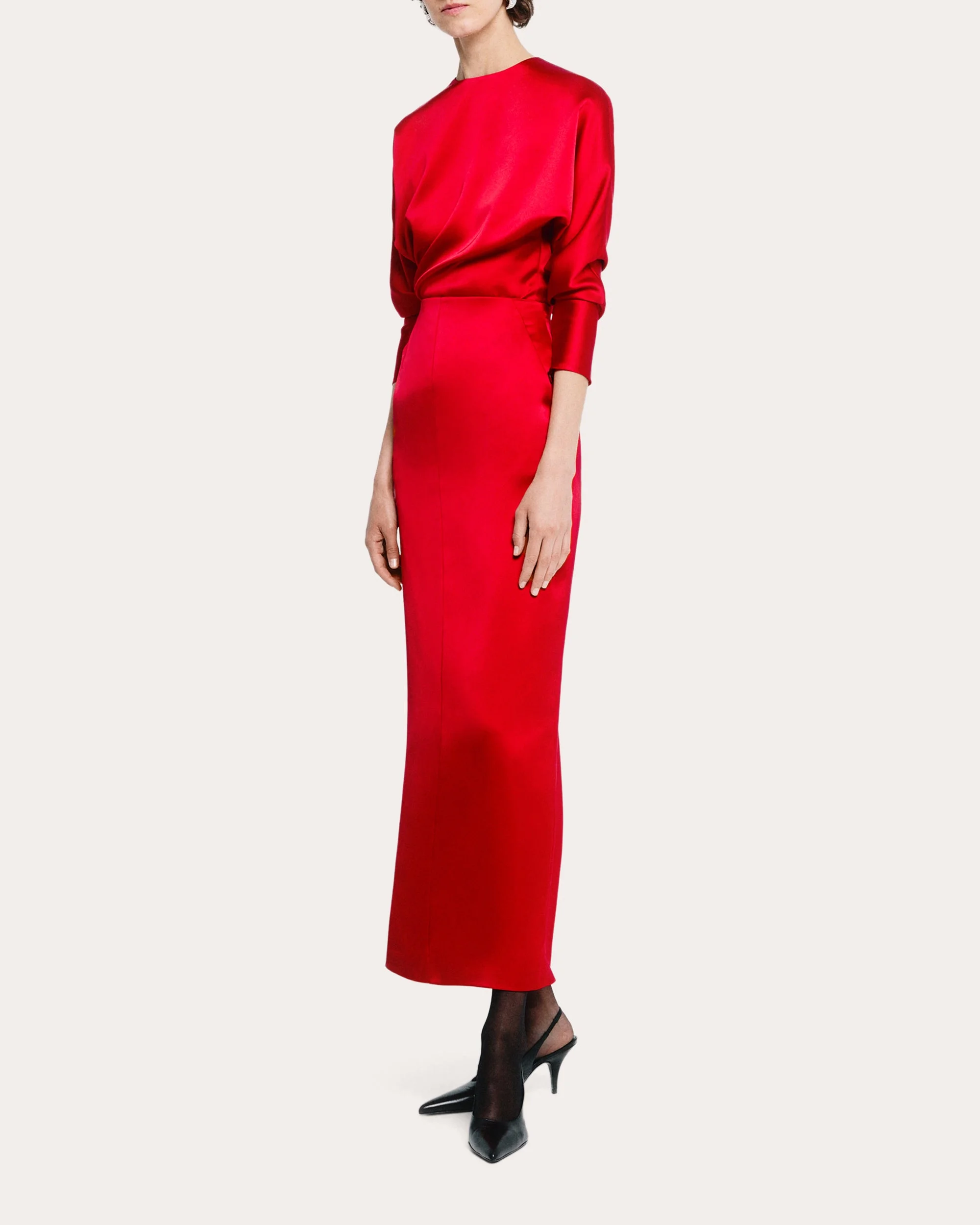 A vision in vibrant red satin, this top embodies refined elegance with its long sleeves and crewneck collar. Pair with Sophie et Viola's Crepe Wide-Leg Pants in Red for monochromatic styling. Back button keyhole closure Designer color name: Red Satin 100% polyester Dry clean Made in Spain Size & Fit Please note, below measurements reflect Sophie et Viola's size chart, not the actual garment. Size 34 (US 2): 31.49in bust, 23.62in waist, 34.64in hips Size 36 (US 4): 33.07in bust, 25.19in waist, 36.22in hips Size 38 (US 6): 34.64in bust, 26.77in waist, 37.79in hips Size 40 (US 8): 36.22in bust, 28.5in waist, 39.37in hips Size 42 (US 10): 37.79in bust, 30.23in waist, 40.94in hips
