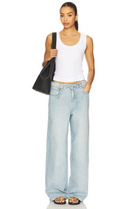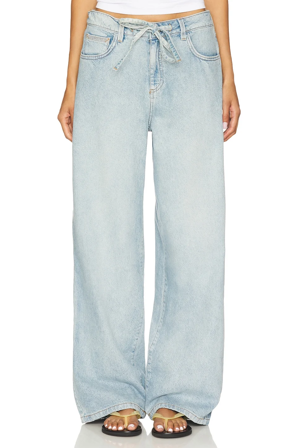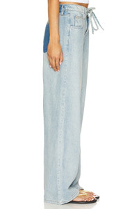 - 80% organic cotton 20% recycled cotton - Machine wash cold - Zip fly with button closure Front self-tie closure.3-pocket styling - Contrast colored wash design - Rigid denim fabric.23" at the knee narrows to 20" at the leg opening - Revolve Style No. STYR-WJ11 - Manufacturer Style No. WBLA0105