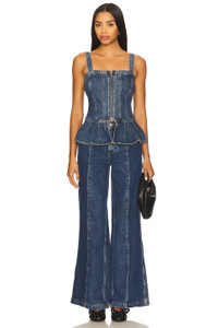 - 65% organic cotton 35% recycled cotton - Machine wash - Front zip closure - Adjustable shoulder straps with button closure - Midweight denim - Revolve Style No. STYR-WS5 - Manufacturer Style No. WMIL0302
