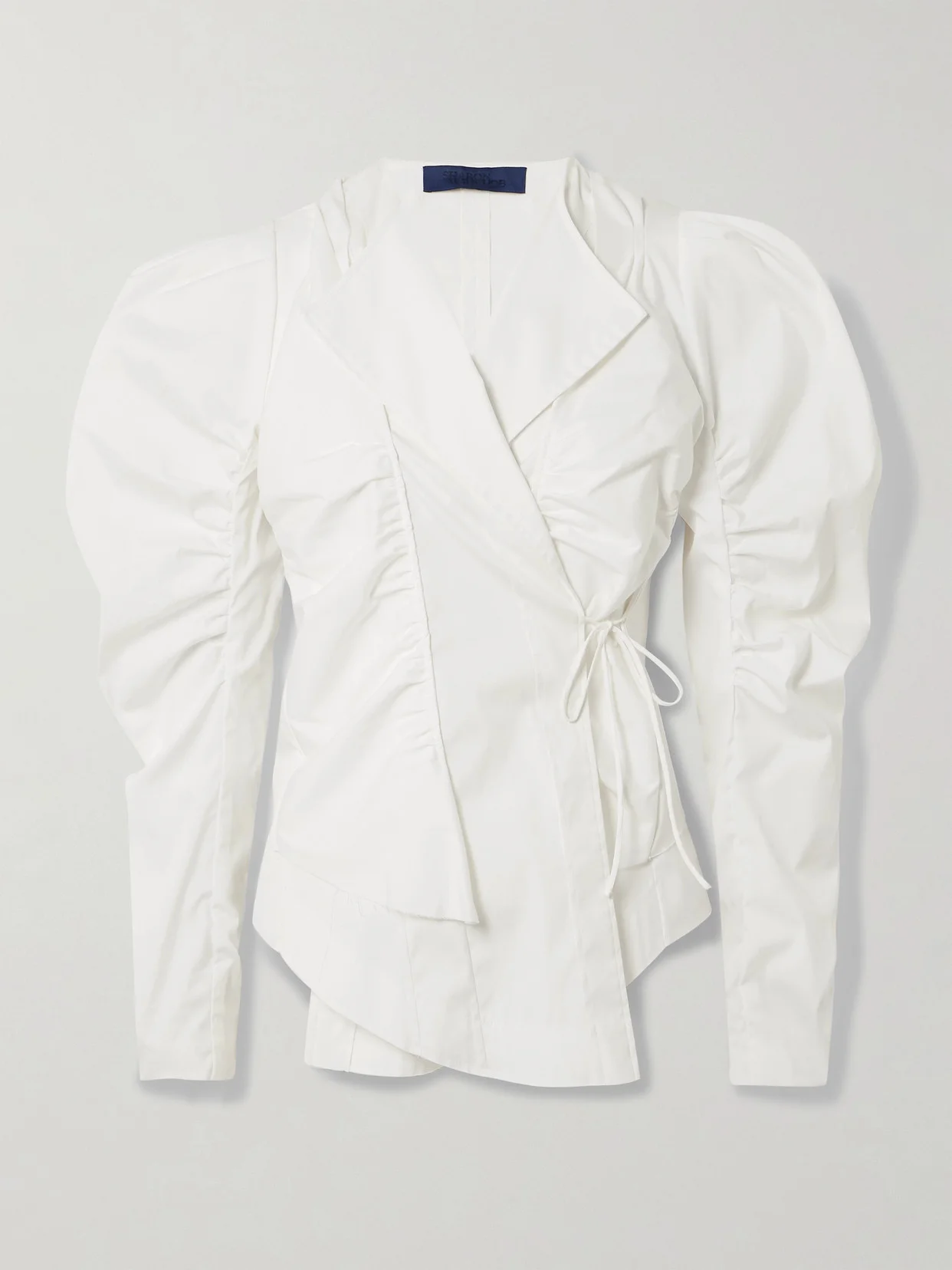 Sharon Wauchob has an artful approach to design, and this 'Bann' shirt is no exception. It's tailored from cotton-poplin with dramatic ruches through the bodice and has blouson sleeves that evoke romantic styles, while keeping the result fresh.