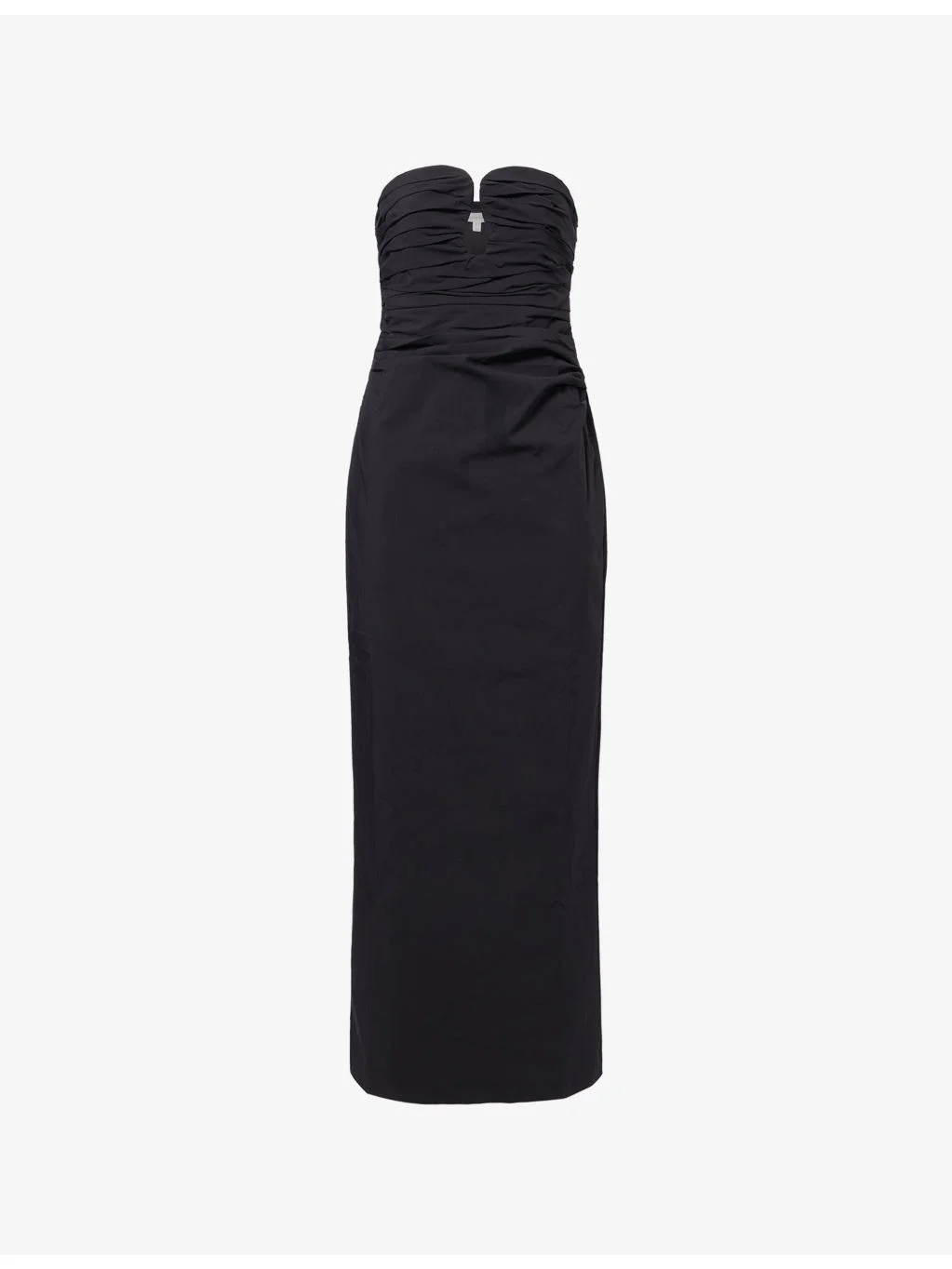 PRODUCT DETAILS - Shona Joy cotton-blend maxi dress - 56% cotton, 40% nylon, 4% elastane - Concealed zip fastening at back - Fitted, strapless, U-shape wire cut-out at bust, ruching at front, split hem at back, pencil skirt, lined - Dry clean - True to size - Model is 5ft 10in/1.78m and wears a size UK 8 - Lightweight, slight stretch Ref: R04615516
