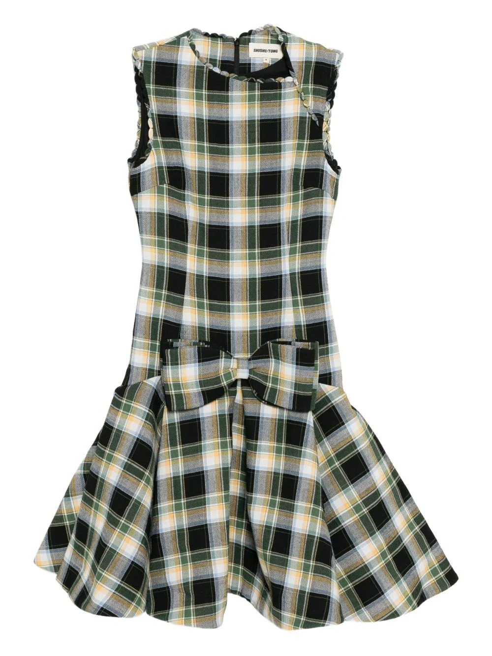 plaid sleeveless wavy dress Highlights - Olive green - Concealed rear zip fastening - Asymmetric neck Imported Composition Outer: Viscose 63%, Wool 37% Lining: Polyester 100% SIZE & FIT Model measurements Height 5 ft 10 in(1.78 m) Bust/Chest 28.74 in(73 cm) Hips 31.49 in(80 cm) Waist 23.62 in(60 cm) FittingInformation Designed for a close fit at the chest and waist with a loose fit at the hip Made from a midweight non-stretch fabric Washing instructions Dry Clean Only
