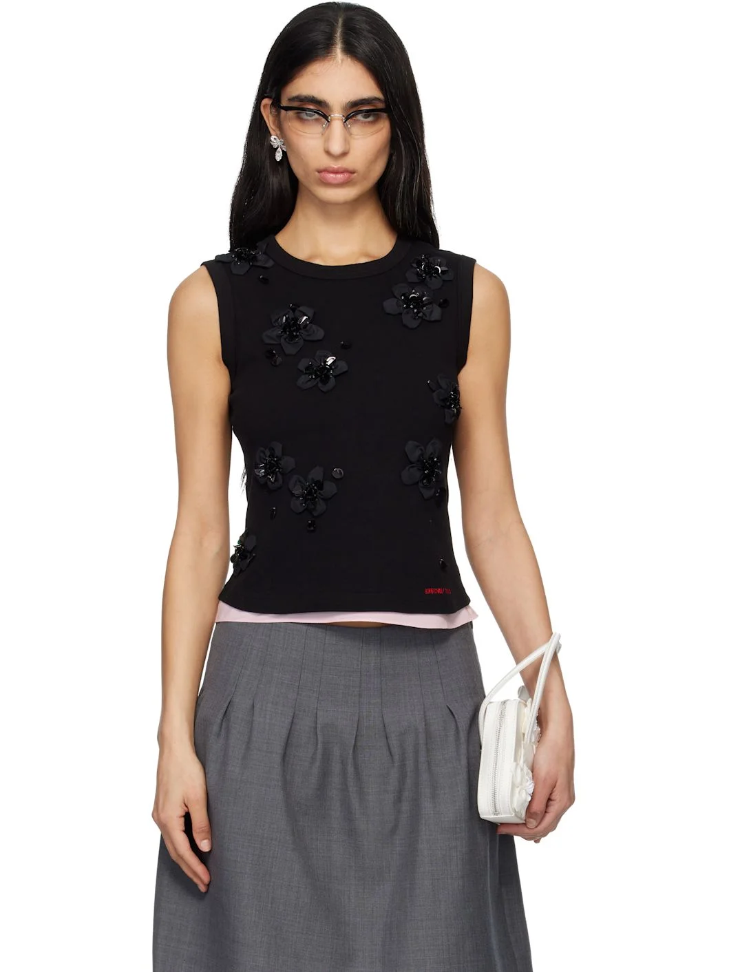 Stretch cotton interlock jersey tank top. · Crewneck · Sequins and floral appliques at front · Logo embroidered at hem Supplier color: Black 95.9% cotton, 4.1% elastane. Made in Japan 261901F111002
