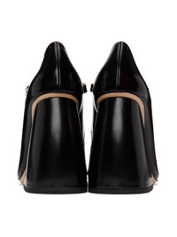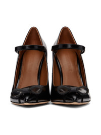 Polished leather heels in black. · Rubberized bow accent at pointed toe · Adjustable Velcro strap at vamp · Covered block heel · Leather sole in beige · Heel: H4 in Supplier color: Black Leather.