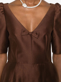 chocolate brown bow detailing puff sleeves V-neck short sleeves zip fastening - Color: BROWN - Made in: Bangladesh - Designer Style ID: MWDEDR06 SAT254 BN100 Composition and care Fabric: 100.0%