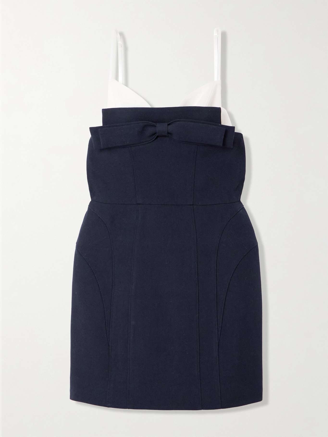 EDITORS'NOTES SHUSHU/TONG's dress is designed with contrasting trims at the neckline that take cues from peek-a-boo lingerie. Tailored from wool and silk-blend twill, it features a sweet bow and has contouring seams that highlight the sculptural shape. SIZE & FIT Model measurements: - Fits small to size, take one size larger than normal - Designed for a slim fit - Fully adjustable shoulder straps - Particularly short in length - Mid-weight, non-stretchy fabric - Model is 180cm/ 5'11", normally wears a UK 6 and is wearing a UK 8 - Bust: 85cm/ 33.5" - Waist: 62cm/ 24.5" - Hip: 88cm/ 34.5" DETAILS & CARE - White wool and linen-blend, navy wool and silk-blend twill - Concealed zip fastening along back - 97.8% wool, 2.2% silk; trim: 50% wool, 50% linen - Dry clean