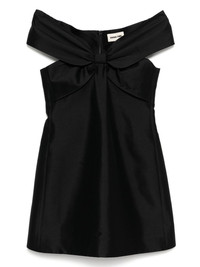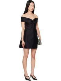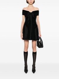 Wool- and silk-blend twill minidress. · Off-the-shoulder construction · Bow at partially elasticized sweetheart neck · Box pleat at front · Zip closure at back · Integrated bra with hook-eye fastening at interior · Full satin lining Supplier color: Black Body: 56% wool, 44% silk. Lining 1: 83% polyamide, 17% elastane. Lining 2: 100% polyester. Made in China 251901F052060