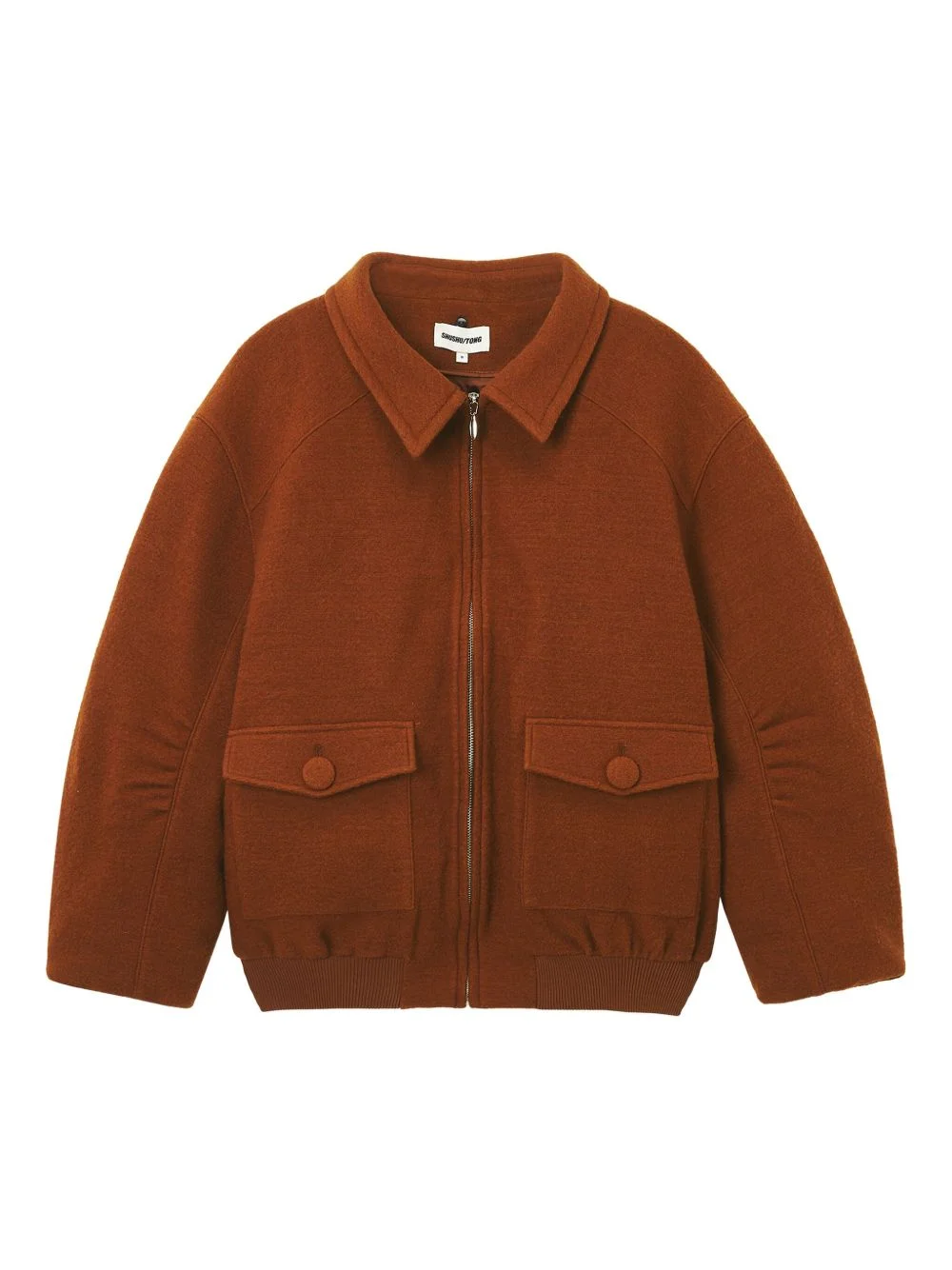 button pocket jacket Highlights - Caramel - Ribbed hem - Front zip fastening - Classic collar - Front buttoned pockets - Long sleeves Imported Composition Wool 100%