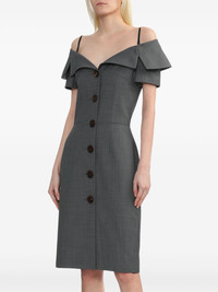 button-up dress Highlights - Grey - Front button fastening - Spaghetti straps - Off-shoulder Imported Composition Polyester 51%, Wool 49% Washing instructions Read Manufacturer Guidelines