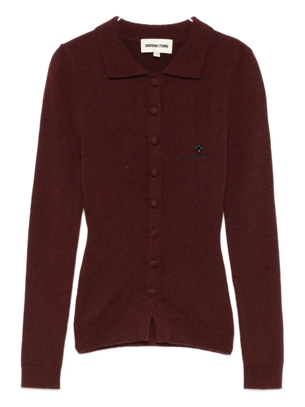 button-up knit cardigan Highlights - Burgundy - Button fastening - Spread collar - Logo embellishment - Long sleeves Imported Composition Cashmere 65%, Cotton 35% SIZE & FIT Model measurements Height 5 ft 11 in(1.8 m) Bust/Chest 30.7 in(78 cm) Hips 35.23 in(89.5 cm) Waist 25.19 in(64 cm) Washing instructions Read Manufacturer Guidelines