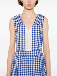 checked dress Highlights - Royal blue - Rear zip fastening - Plunging v-neck - Pleat detailing - Lace detailing Imported Composition Wool 53%, Linen/Flax 47% SIZE & FIT Model measurements Height 5 ft 10 in(1.78 m) Bust/Chest 29.92 in(76 cm) Hips 34.64 in(88 cm) Waist 24.8 in(63 cm) FittingInformation Designed for a close fit at the chest and waist with a loose fit at the hip Made from a midweight non-stretch fabric Washing instructions Dry Clean Only