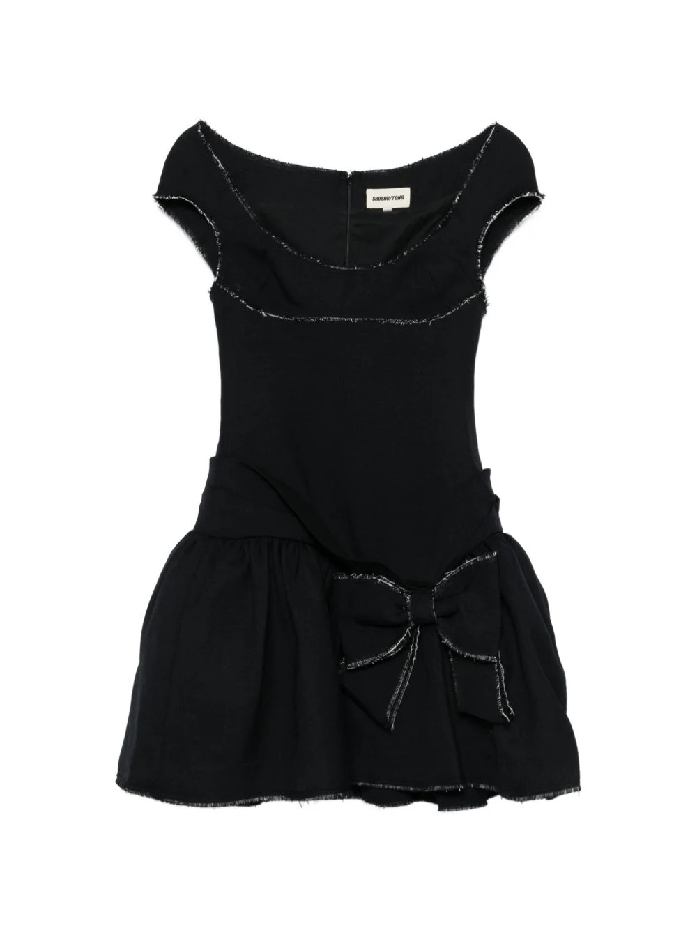deep u-neckline bow dress Highlights - Navy blue - Bow - Short sleeves - Frayed trim - Mini length Imported Composition Polyester 100% Washing instructions Read Manufacturer Guidelines