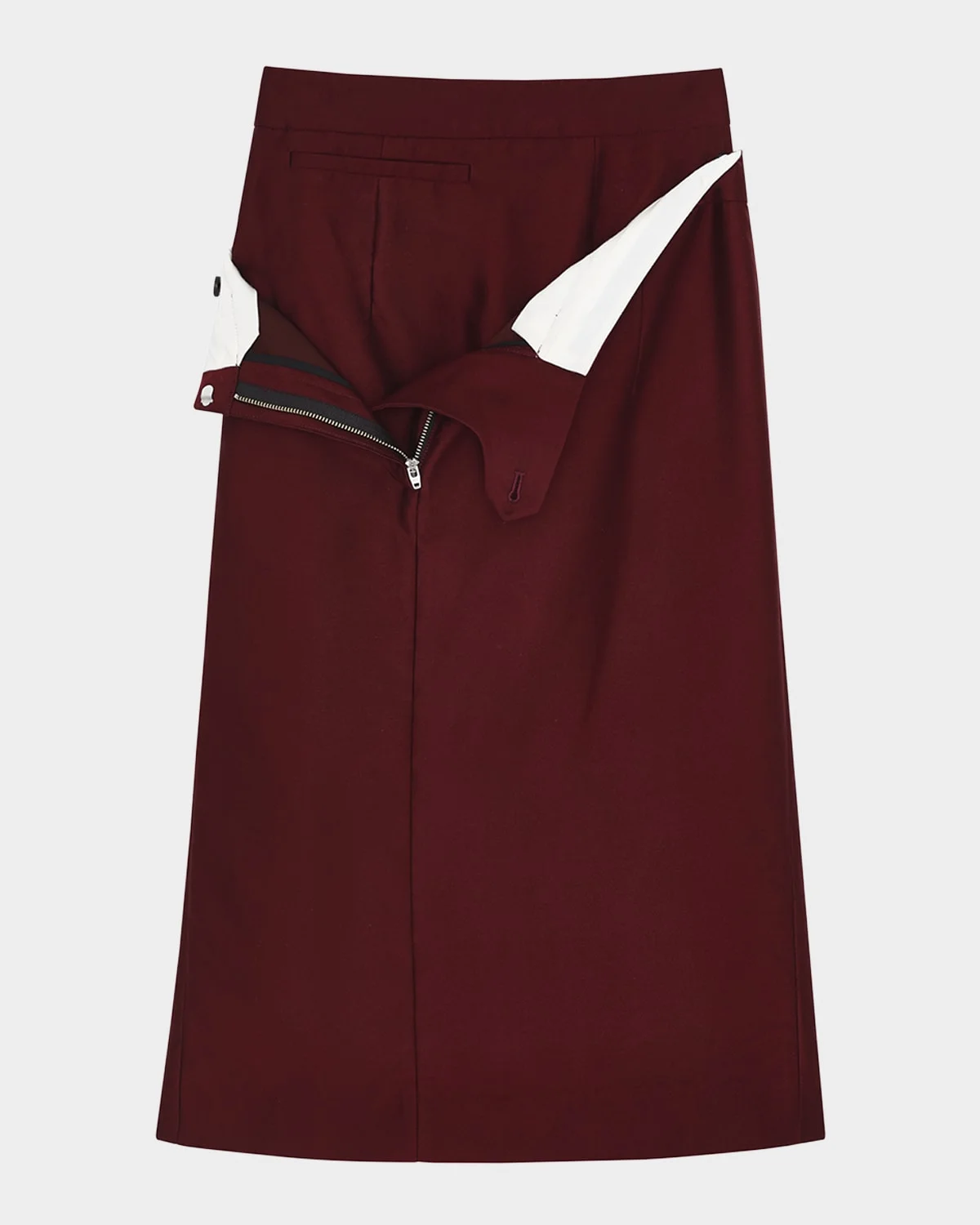 - SHUSHU/TONG wool-silk twill midi skirt featuring a detachable mini skirt underlay - High rise - Single welt pocket - Skirt falls straight from hip to hem - Hem falls below the knee - Snap closure - Wool/viscose/silk - Unlined - Dry clean - Imported