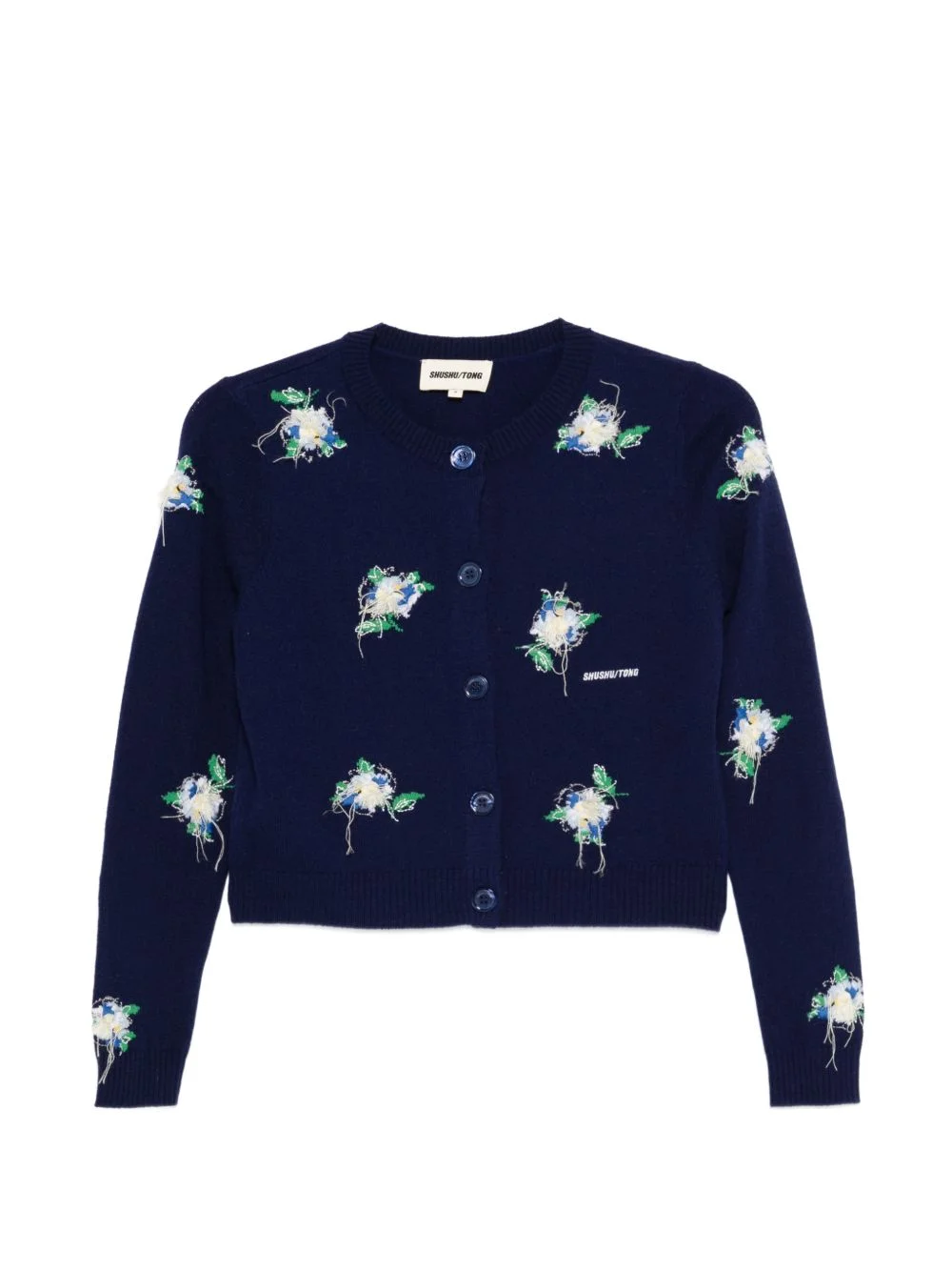 floral embroidery cardigan Highlights - Navy blue - Floral embroidery - Round neck - Button fastening - Long sleeves - Embroidered logo Imported Composition Wool 100% Washing instructions Dry Clean Only