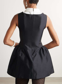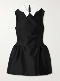 EDITORS'NOTES Sydney Sweeney and Olivia Rodrigo are fans of SHUSHU/TONG’s sweet yet rebellious dresses. This mini style is made from wool and silk-blend twill and has a contrasting pointed collar to give the illusion of perfectly layered separates. Gathered details at the hips create sculptural volume. SIZE & FIT Model measurements: - Fits true to size, take your normal size - Designed to be fitted at the bust and waist, loose at the hip - Particularly short in length - Mid-weight, non-stretchy fabric - Model is 180cm/ 5'11" and is wearing a UK 6 - Bust: 85cm/ 33.5" - Waist: 62cm/ 24.5" - Hip: 88cm/ 34.5" DETAILS & CARE - Black wool and silk-blend twill, white wool and linen-blend - Concealed zip fastening along back - 56% wool, 44% silk; trim: 50% wool, 50% linen - Dry clean
