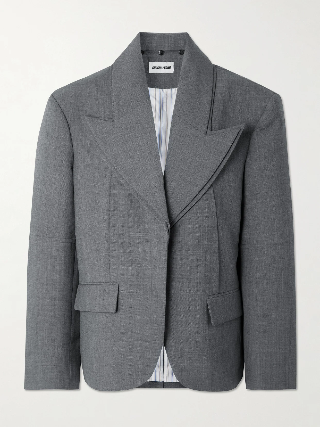 The sharp lapels on SHUSHU/TONG's blazer add a dramatic touch to a classic design. It's made from a flannel blend with a generous amount of wool and is designed for a relaxed fit. Style yours with the matching pleated skirt.