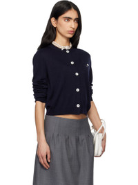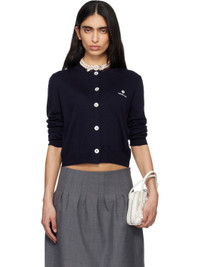 Navy Logo-Stitch Knit Cardigan