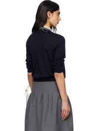 Knit silk- and cashmere-blend cardigan. · Rib-knit round neck, hem, and cuffs · Lace-trim at collar · Button closure · Logo hardware and embroidered logo at chest Supplier color: Navy Blue 84.8% silk, 15.2% cashmere. Made in Japan 261901F095003