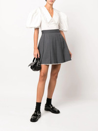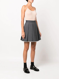 pleated A-line skirt dark grey high waist pleated skirt raw-cut hem contrasting trim Imported Composition Polyester 71%, Wool 29% SIZE & FIT Model measurements Height 5 ft 10 in(1.78 m) Bust/Chest 33.07 in(84 cm) Hips 35.82 in(91 cm) Waist 25.98 in(66 cm) FittingInformation This piece fits true to size. We recommend you get your regular size Cut for a loose fit Made with a mid-weight non-stretch fabric Washing instructions Dry Clean Only