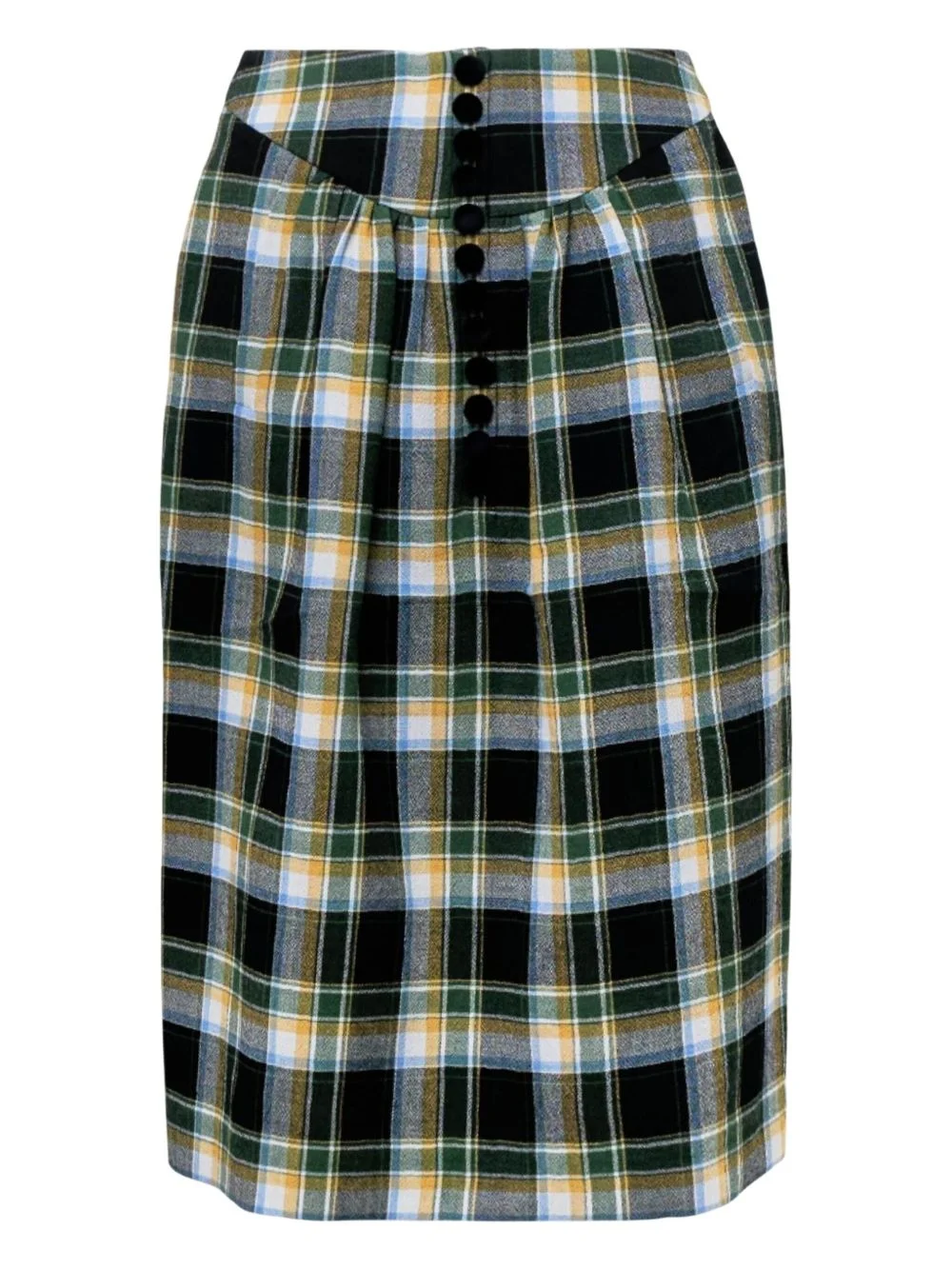 pleated checked skirt Highlights - Black/multicolour - Pleated detailing - Checked pattern - Button fastening - Rear zip fastening - Straight hem Imported Composition Outer: Viscose 62%, Wool 38% Washing instructions Dry Clean Only
