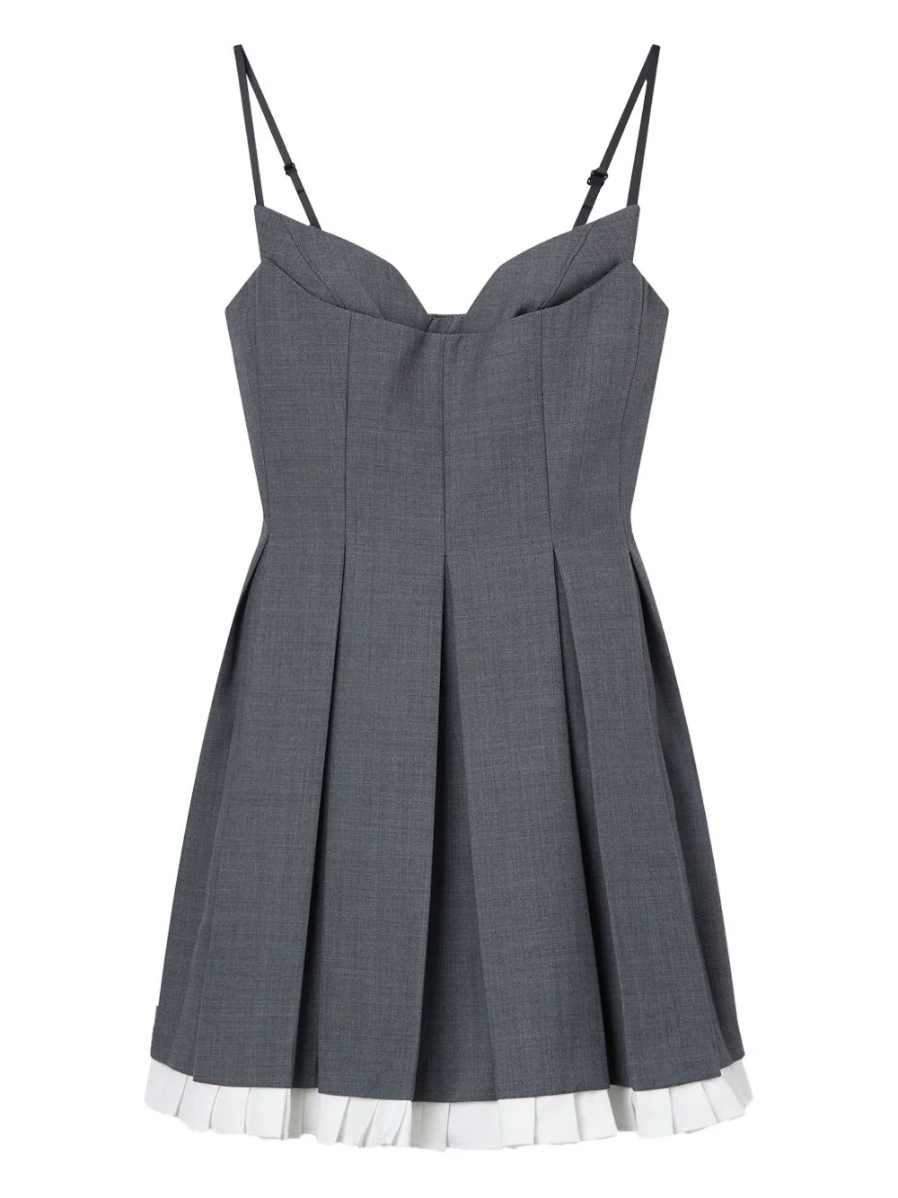 pleated mini dress Highlights - Grey - Adjustable straps - Pleated skirt - Layered hem - Zip fastening Imported Composition Polyester 51%, Wool 49% Washing instructions Read Manufacturer Guidelines